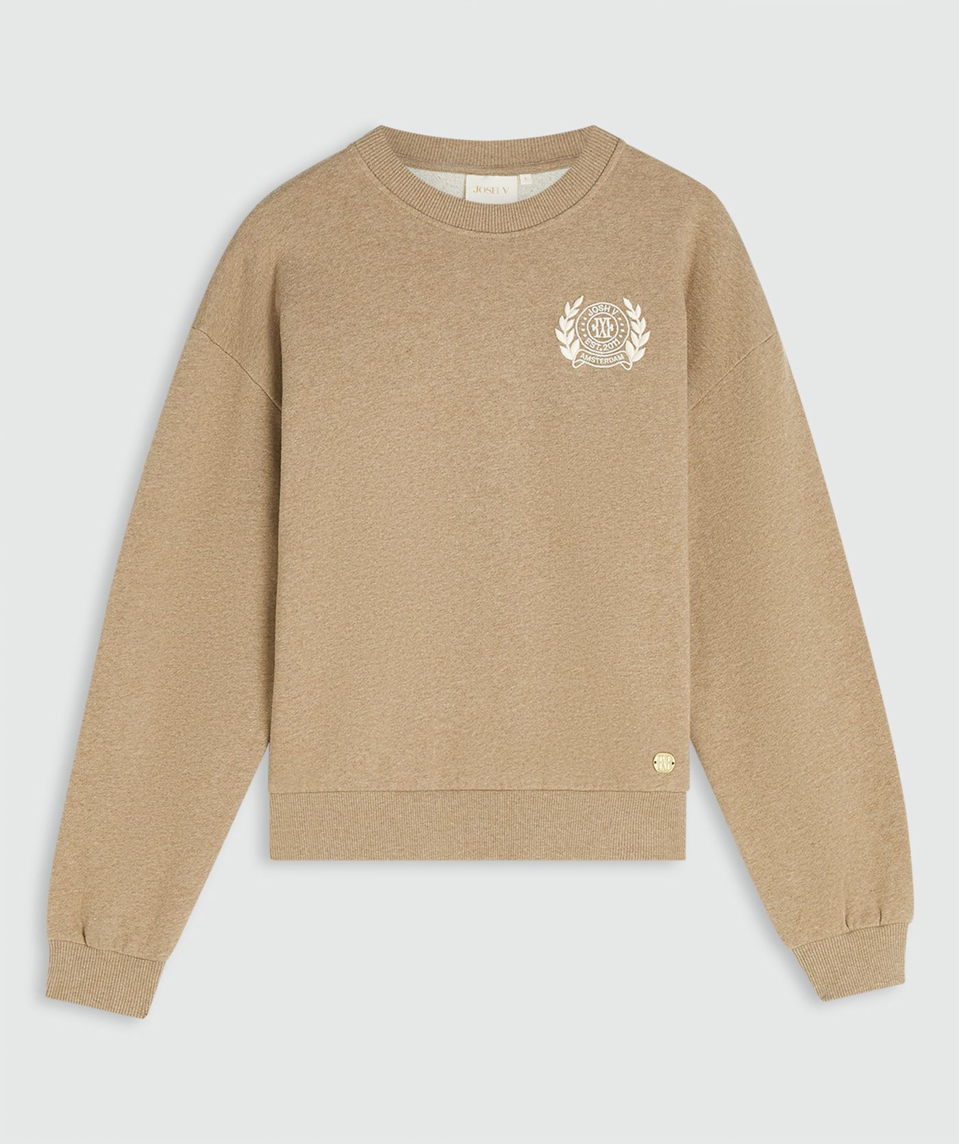 De JOSH V Naomi dames sweater in de kleur Light Khaki Melange is gemaakt van katoen, ingekocht via het Better Cotton Initiative (BCI™). De bruine sweater heeft een relaxed fit en een ronde hals. De linkerborst is voorzien van logoborduring. Het zachte materiaal en de comfortabele fit zorgen ervoor dat dit jouw nieuwe favoriete sweater wordt. Combineer de Naomi sweater met een high waisted jeans of shorts voor een casual look.